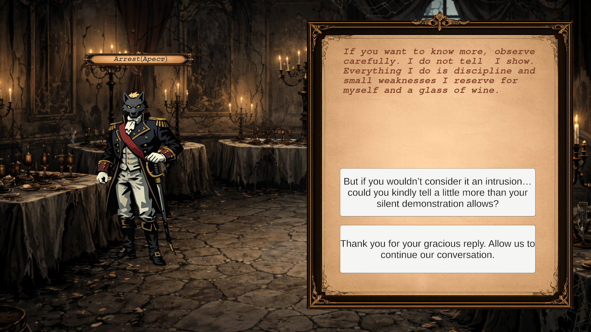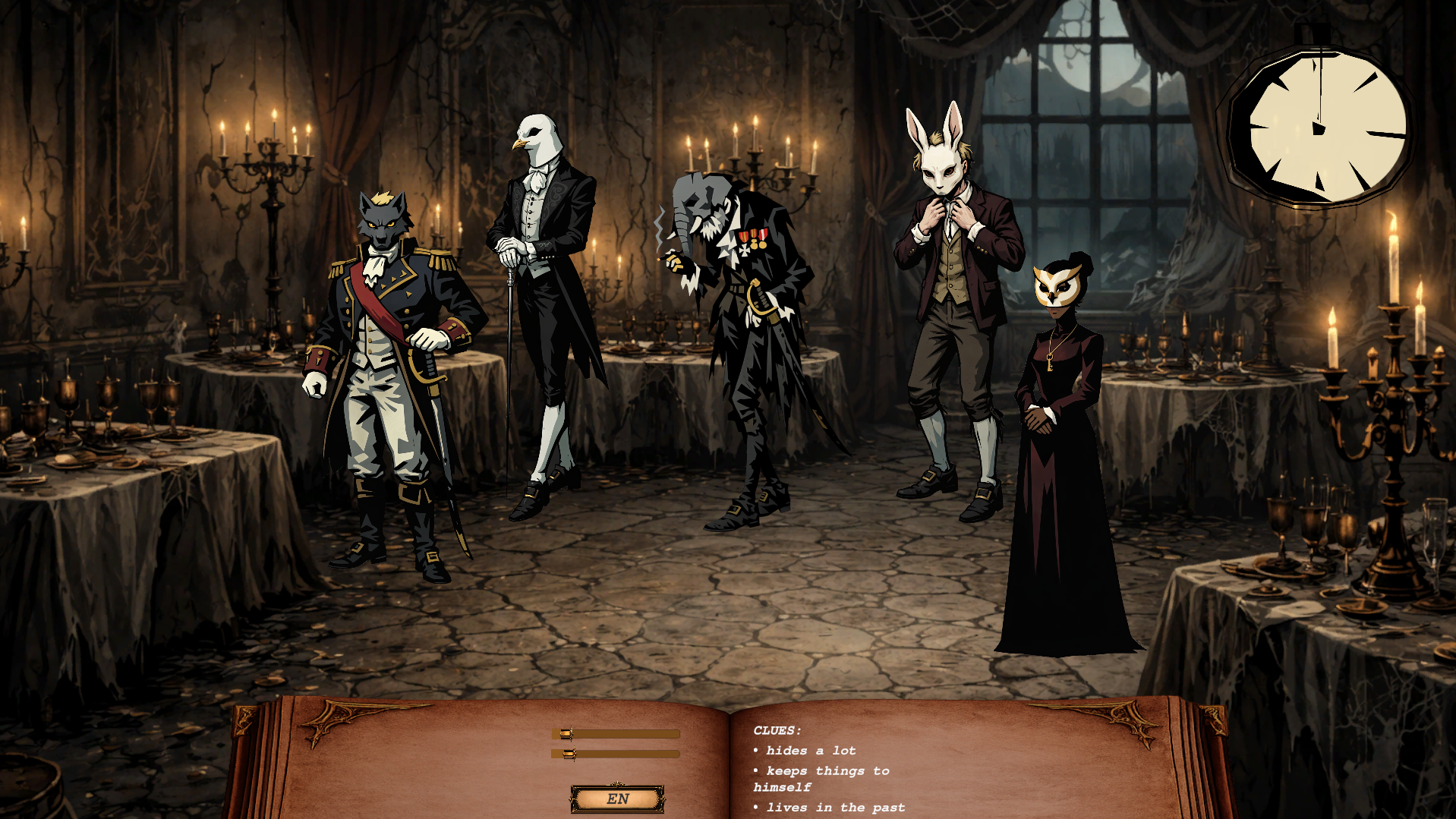 As the player, you must uncover the criminal by analyzing the characters’ speech, intonation, and emotions. Clues recorded in the journal will aid your investigation, helping you identify the killer through distinctive traits and behavioral details. But nothing is that simple. Time for the investigation is limited, and the tension steadily rises — enhanced by the sound design, which evolves as the player approaches the final decision.